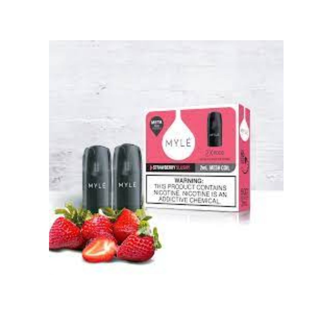 Myle Meta V5 Strawberry Slushy Pods, a tantalizing addition to the Myle Meta V5 pod lineup. Bursting with the refreshing essence of ripe strawberries blended into a delightful slushy, these pods promise to invigorate your senses and elevate your vaping experience.