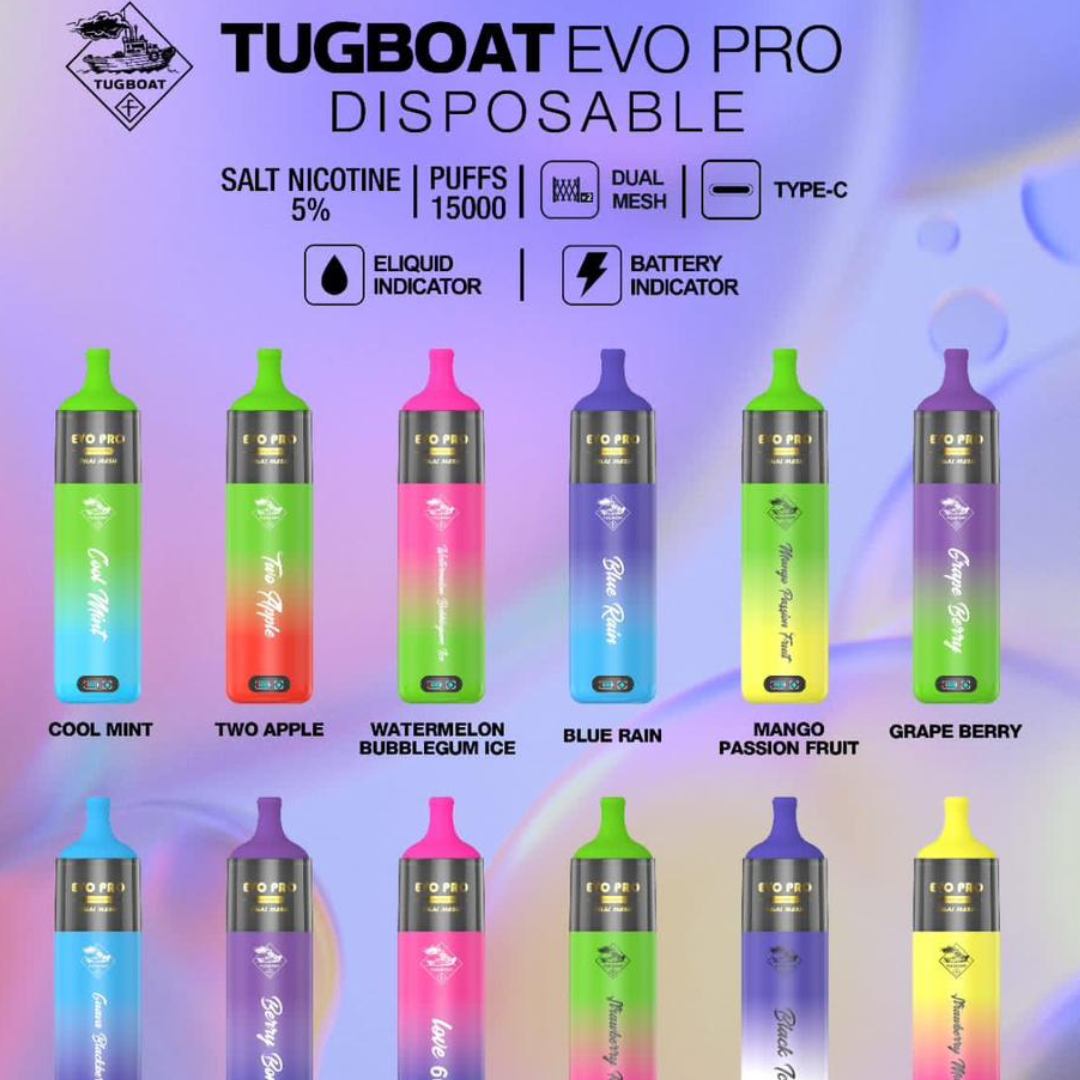 Tugboat Evo Pro 15000 Puff Disposable Vape. Designed for discerning vape enthusiasts, this cutting-edge device combines convenience, power, and flavor like never before. Whether you’re a seasoned vaper or just starting your journey, the Tugboat Evo Pro promises an unparalleled experience with every puff.