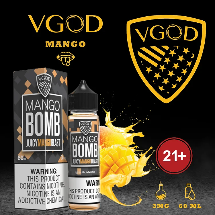 Embark on a tropical journey with VGOD Mango Bomb 60ml, a delightful e-liquid that captures the essence of succulent mangoes in every puff. Crafted with precision and care, this vape juice delivers a burst of tropical sweetness that will transport you to paradise with each inhale.it is designed to provide vapers with a satisfying and flavorful experience, perfect for those who crave the taste of ripe mangoes.